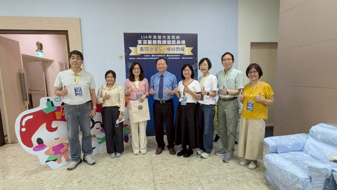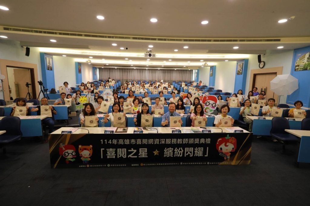在典禮中,高師大教育學系方金雅教授榮獲高雄市教育局頒發的最高榮譽──「喜閱領航獎」,表彰其對喜閱網發展及閱讀教育推動的特殊貢獻,會場洋溢溫馨與感動。