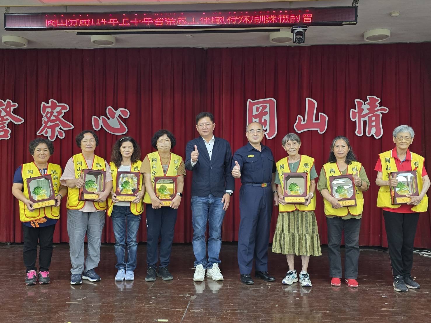 訓練會中,岡山分局長張偉中特別頒發續聘中隊長陳信安、幹事鐘麗芬聘書,感謝其長期對志工工作的堅持與付出;並表揚榮獲113年下半年績優志工共8人,分別為壽天分隊呂林春、楊淑燕,前峰分隊葉麗珍、胡秀蘭,橋頭分隊凌淑芳,燕巢小隊陳冠伶,鳳雄小隊賴林阿麗,及梓官小隊王美秀。