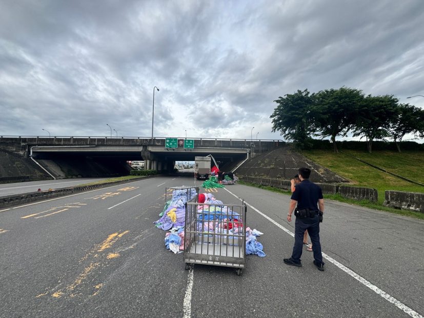 高雄市政府警察局岡山分局於本(7)月5日17時40分接獲民眾110報案,指稱在國道1號高架橋下、岡燕路往燕巢方向的路段,有一輛貨車行駛途中,疑因鴻翼車欄未妥善固定,導致所載貨物掉落,占用部分車道,影響行車安全。