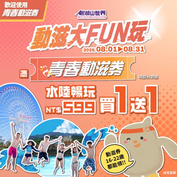 1.動滋券買一送一: 16至22歲青年使用青春動滋券,購買599元門票即可享買一送一超值優惠。