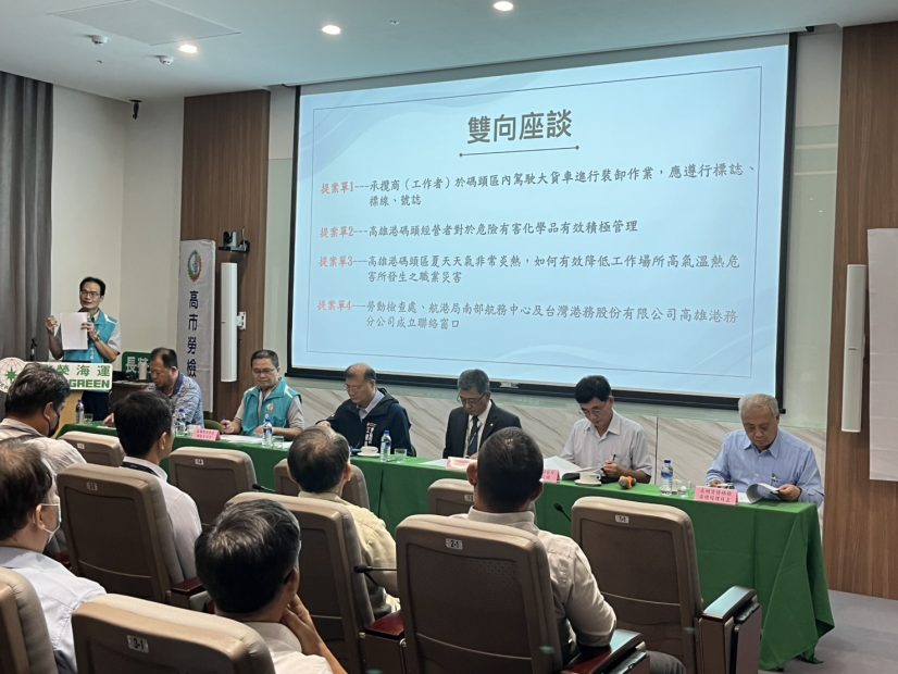 高雄港為我國最大國際商港,為提升港埠作業勞工安全與推動業者自主管理,高雄市勞工局於9月5日在高雄港第七櫃中心舉辦「港埠作業高階主管安全衛生管理宣導座談會」,邀集高雄市國際輪船商業同業公會、臺灣港務公司及相關航商、裝卸業者等70位高階主管與會。會議由勞工局江健興局長、輪船公會理事長吳岳峰、航港局南部航務中心主任張博彥、高雄港務分公司處長陳文鵬、高明碼頭總經理高枝正及勞檢處郭清吉處長共同主持。