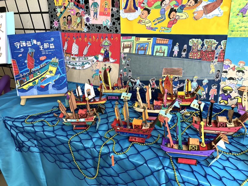 發表會壓軸進行了象徵啟航的「迎王揚帆」儀式,兩面印有「永續海洋」與「安世王船」的大型船帆在倒數聲中緩緩升起,伴隨藍白紙花灑落,象徵守護藍海的信念正式啟航。會場亦設置「繪本原稿展示區」與「動畫原稿展示區」,讓來賓近距離欣賞孩子們的手繪插畫、草圖及動畫分鏡,感受創作背後的用心與溫度。