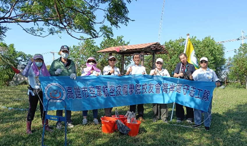 9月27日風和日麗,高雄市空軍航空技術學院校友會所屬海岸巡守志工隊,於中秋佳節前夕展開「中秋淨灘護海洋」活動。在會長周長松帶領下,一行十人前往高雄市永安區永安漁港旁的鑽石沙灘,以實際行動維護海岸環境。