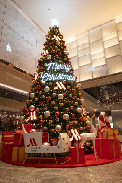 不僅有節慶美饌,高雄萬豪酒店自即日起於大廳裝飾8米聖誕樹,今年以「幻彩奇緣」為主題,樹身裝飾著各式色彩斑斕的彩球、星願禮物盒與麋鹿雪撬,點綴象徵萬豪品牌的M Logo,隨著燈光在大廳四周投射出靜態光影,金、紅與暖白光芒交織出華麗又溫暖的視覺層次,營造濃厚聖誕氛圍,為到訪賓客帶來滿載的冬日祝福。館內10間餐廳也充滿著不同風情的聖誕布置,每個角落都盈滿歡聲笑語,歡迎來到高雄萬豪酒店解鎖更多節慶驚喜。