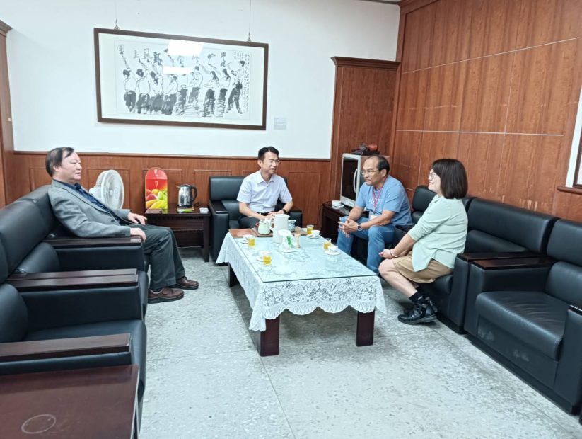 高師大王政彥校長(左1)感謝鳳新高中陳江海校長(中)全力支援分區試務工作/高師大提供